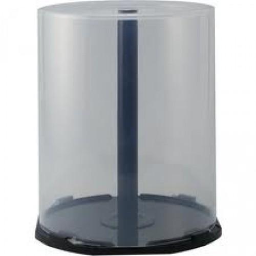 Cake box (tubebox) pentru 100 discuri (CD / DVD / BDR). Ocupa un spatiu mic si este indicat cand nu este necesar ca fiecare disc arhivat sa aiba ambalaj propriu.