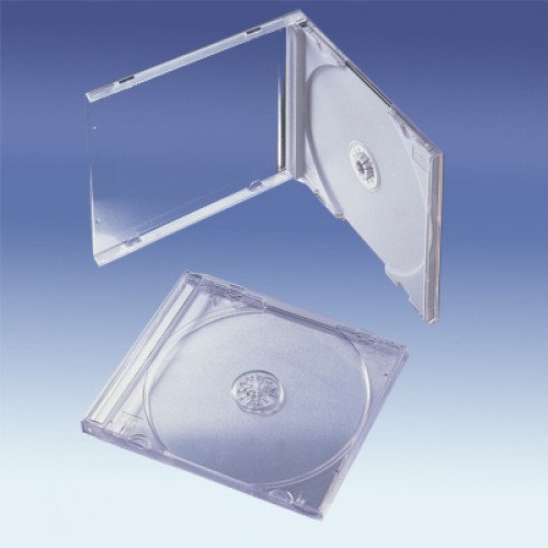 Carcasa pentru un CD cu tavita neagra si fata transparenta, cu grosime de 10.4mm. Este carcasa normala, uzuala, pentru impachetarea CD-urilor. Se mai numeste si..