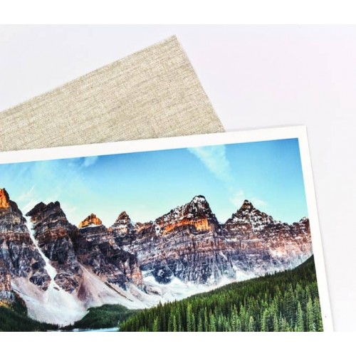Hartie alba foto lucioasa cu o fata ce prezinta o textura asemanatoare panzei / tesaturilor textile (fine art clothes photo paper glossy). Hartia de culoare alb..