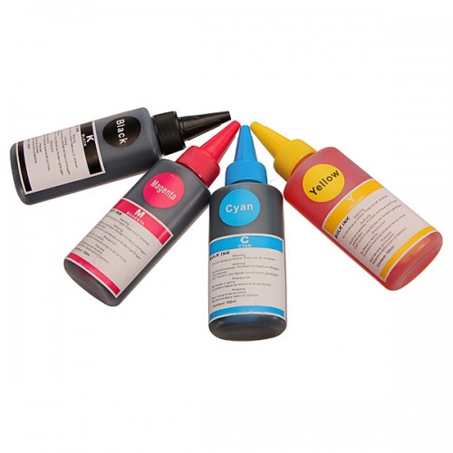 Set de 4 culori de cerneluri ambalate in sticlute de cate 100ml (bulk ink tip dye).Cerneala este de foarta buna calitate, similara cernelurilor originale de la ..