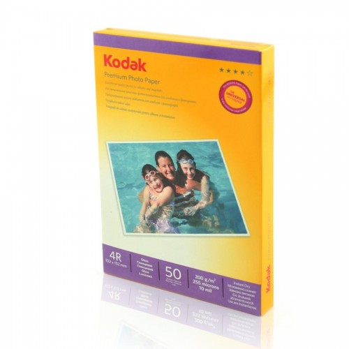 Hartie foto pentru imprimari cu jet de cerneala, marca Kodak, format 10x15 (4R), pachet de 50 de coli de greutate specifica 200g/mp. Produsul este Kodak origina..