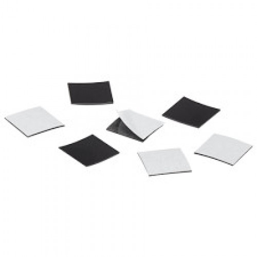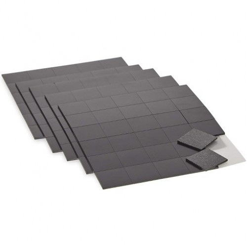 Set de 90 bucati de mini magneti flexibili, pretaiati, cu adeziv pe una din fete (autoadezivi), dimensiuni de 20 mm x 20 mm.