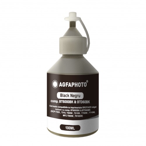 Cerneala black (negru) pentru imprimante HP marca Agfa Photo, ambalate in sticla de 100ml (dye ink).Cerneala Agfa pentru imprimante inkjet HP desktop..