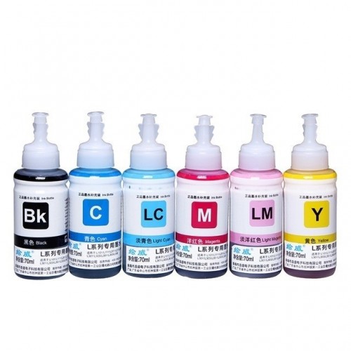 Cerneala este de calitate similara celei folosite de sistemele de imprimare Epson cu 6 culori (CMYK LC LC) = cyan, magenta, yellow, black, light magenta, light cyan).